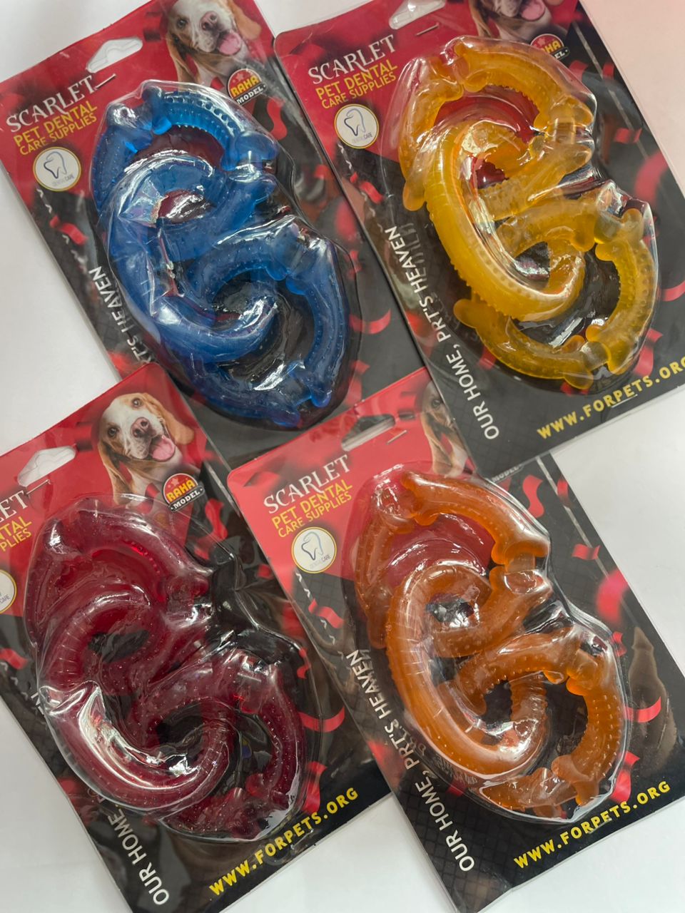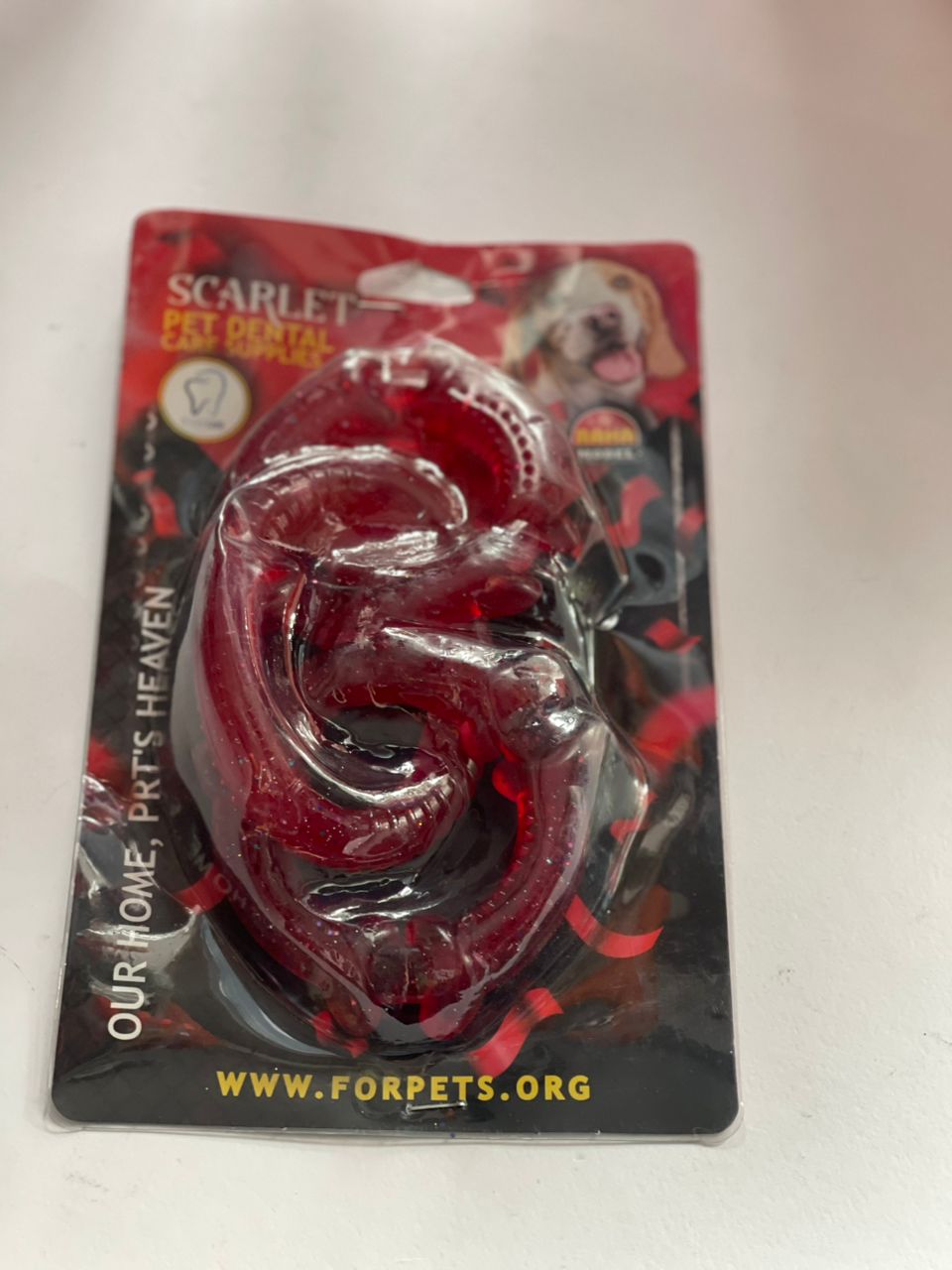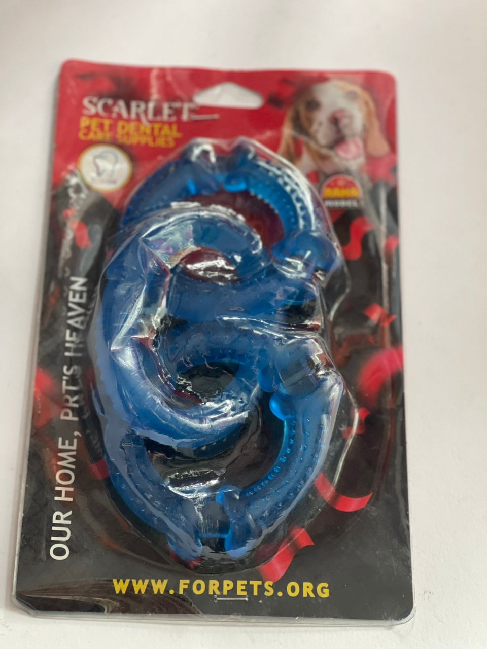 دندانی 3 حلقه ی سیلیکونی اسکارلت که با طراحی سه حلقه سیلیکونی به جویدن و تمیز کردن دندانها کمک میکند و سرگرمی سالمی برای پت شما فراهم میکند.